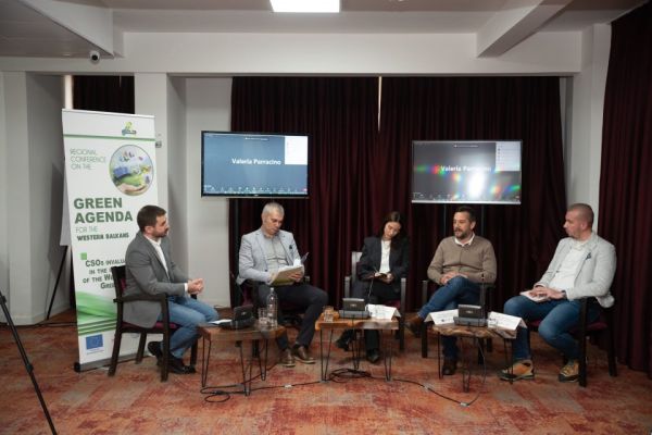 Within the panel, Andina was accompanied by Blagoja Mukanov of "GREEN GROWTH PLATFORM," Bojan Trpevski from MACEDONIAN YOUNG LAWYERS ASSOCIATION (MYLA), Gjoko Vukanovski of "MHRA/CED FLOROZON," and Hristina Vojdovic from "RERI," which engaged the audience with stories of success in advocating for the Green Agenda across the Western Balkans. The talk focused on working together with policymakers, stressing the importance of unified strategies and the positive results they bring, where panelists agreed that “forming strong partnerships with civil society organizations is crucial for making the Green Agenda a success”.